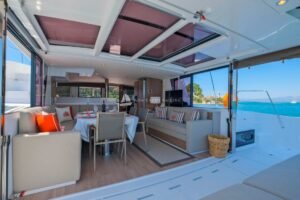- Yaşam Alanı Avantajı: Bali Catamarans’a özgü “garaj kapısı” sistemi sayesinde salon ve kokpit birleşerek tek bir geniş yaşam alanına dönüşür.