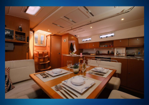 Teknemiz, sarma yelken sistemi ile kaptanımız eşliğinde yelken pratiği yapmanıza olanak tanımaktadır. Aşçı hizmeti bulunmamaktadır; ancak misafirler tekne mutfağını kullanabilir veya yanaşılan restoranlardan yararlanabilirler.