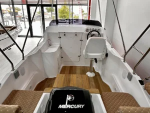 2.15 metrelik genişliği ve 4.95 metre boyu ile dengeli bir tasarıma sahip olan Samba Deluxe, dıştan takma motor uyumluluğu ile hem yakıt tasarrufu hem de kolay kullanım avantajı sunar. Üst düzey konfor detayları, estetik çizgilerle buluşarak göz alıcı bir tekne deneyimi yaratır.