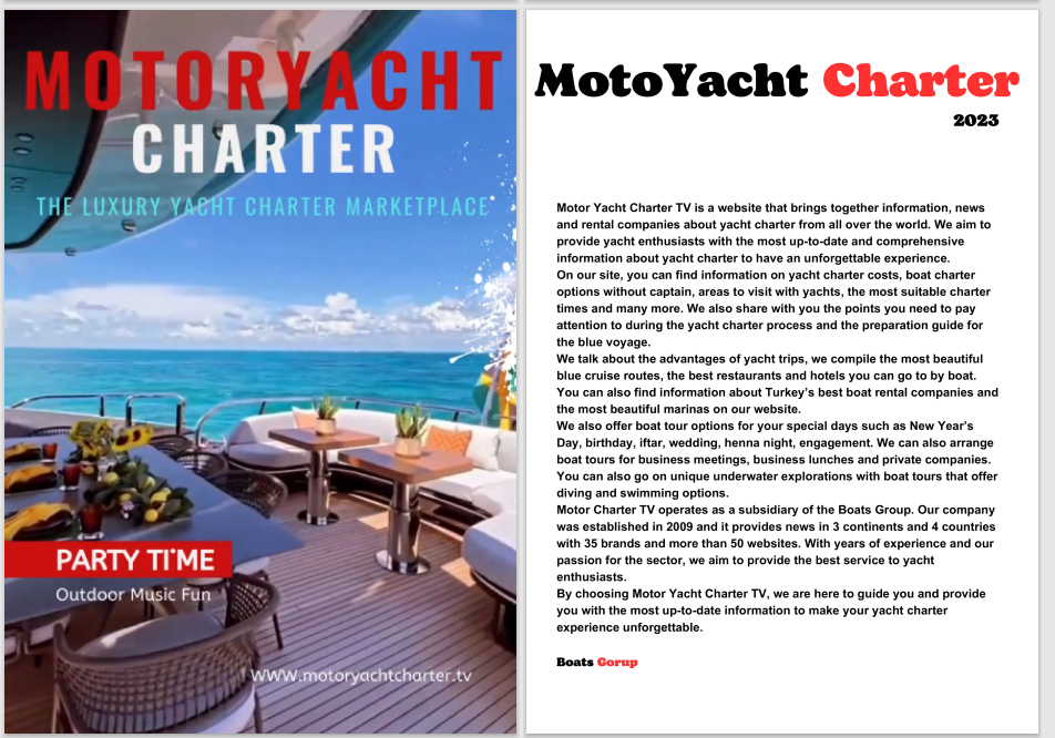 We broadcast your products and services to a wide audience through 19 local Turkish and 51 international English-language web platforms. Whether it’s rental and sale of boats, sailboats, motor yachts, catamarans, inflatable boats, or marine engines, we promote your offerings globally. Additionally, we amplify your news on boat and yacht materials with highly effective SEO-focused content.